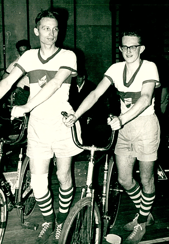 Karl Born / Walter Dobbratz 1961 begann der große Aufschwung der    Radball-Abteilung. Nach Karl Born / Herbert Kamberger bildete nun Karl Born mit Walter Dobbratz (rechts) die erste Mannschaft. Nach mehreren Turniersiegen gelang diesem Team 1964 erstmals der Aufstieg in die neue Oberliga-Niedersachsen. Schon 1965 wurde bei der Niedersachsen-Meisterschaft Platz zwei belegt und bei der „Norddeutschen" in Hamburg war man als Oberliga-Aufsteiger stolz auf Platz sechs unter elf Teilnehmern.